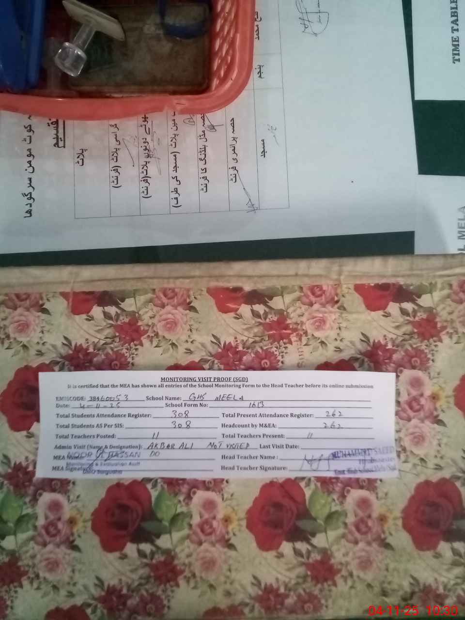 | EMIS Code: 38460053 | Name of School: GHS MEELA | |||