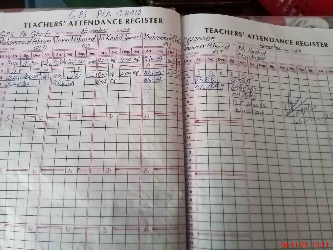| Name: MU**** Ak**** Designation: (School Headmaster's/Headmistress's) PST Phone/Cell Number: 03**** |