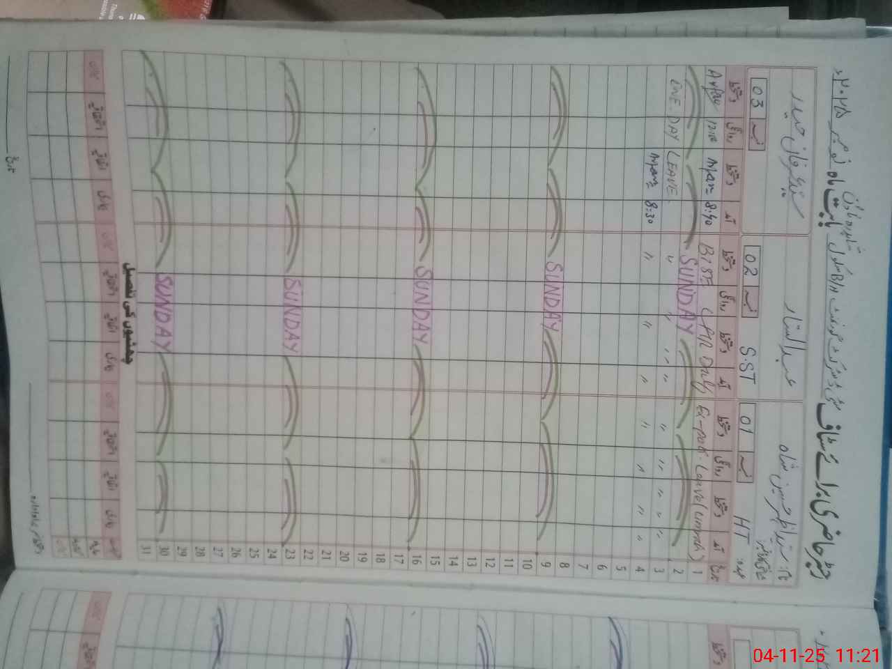 | 35**** | Zu**** Ah**** | WATERMAN | 0 | 0 | 31 | 0 | 0 | 0 | 0 | 0 | 0 | Absent (Un-Authorized) | |