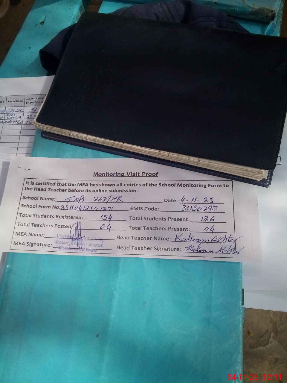 | EMIS Code: 31130293 | Name of School: GMPS CHAK NO 267 HR | |||