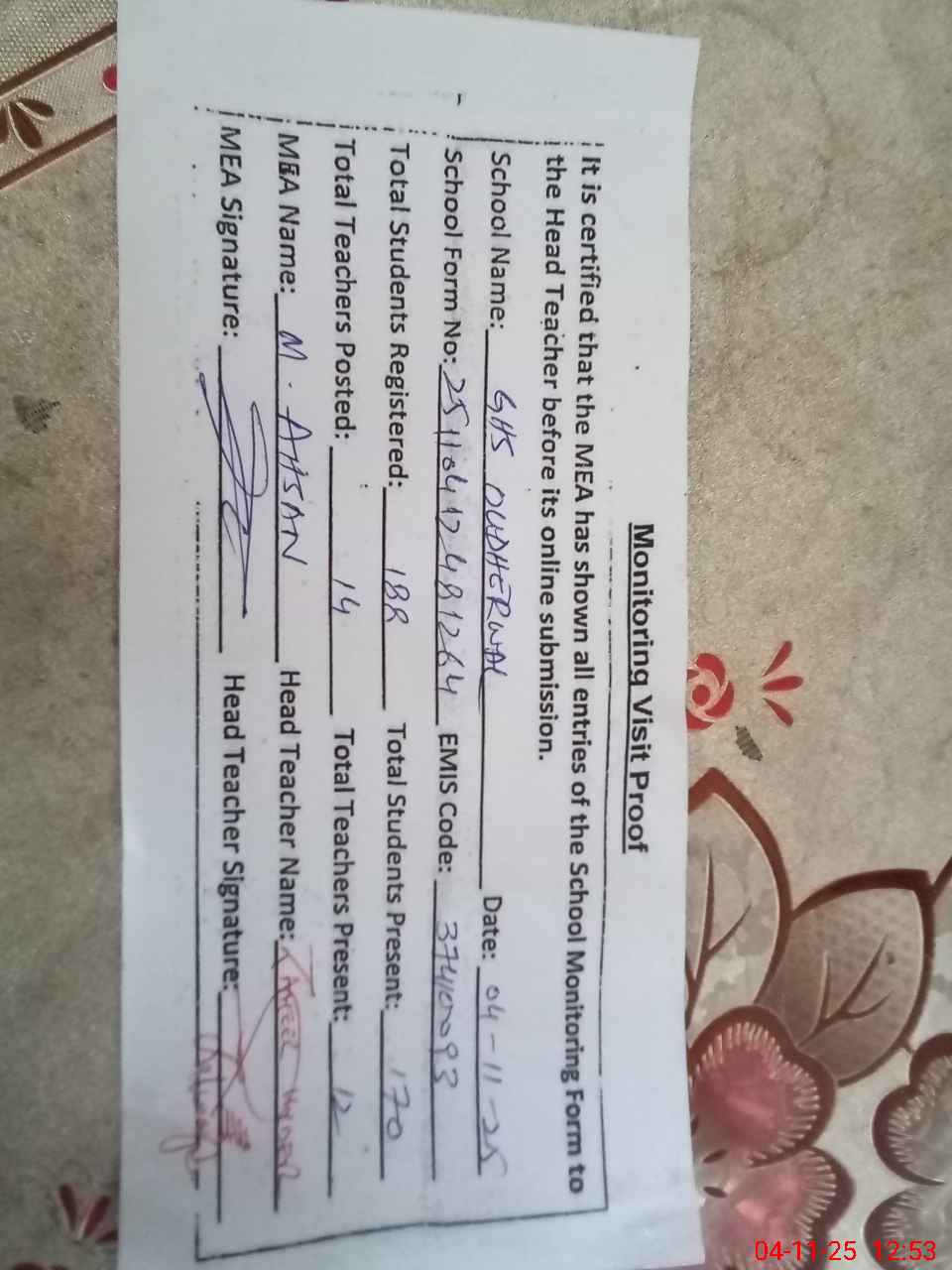 | EMIS Code: 37410093 | Name of School: GHS OUDHERWAL | |||