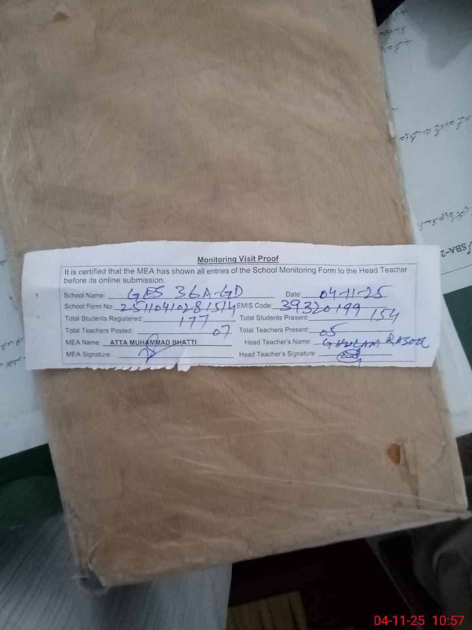 | EMIS Code: 39320199 | Name of School: GES CHAK 36-A/G.D | |||
