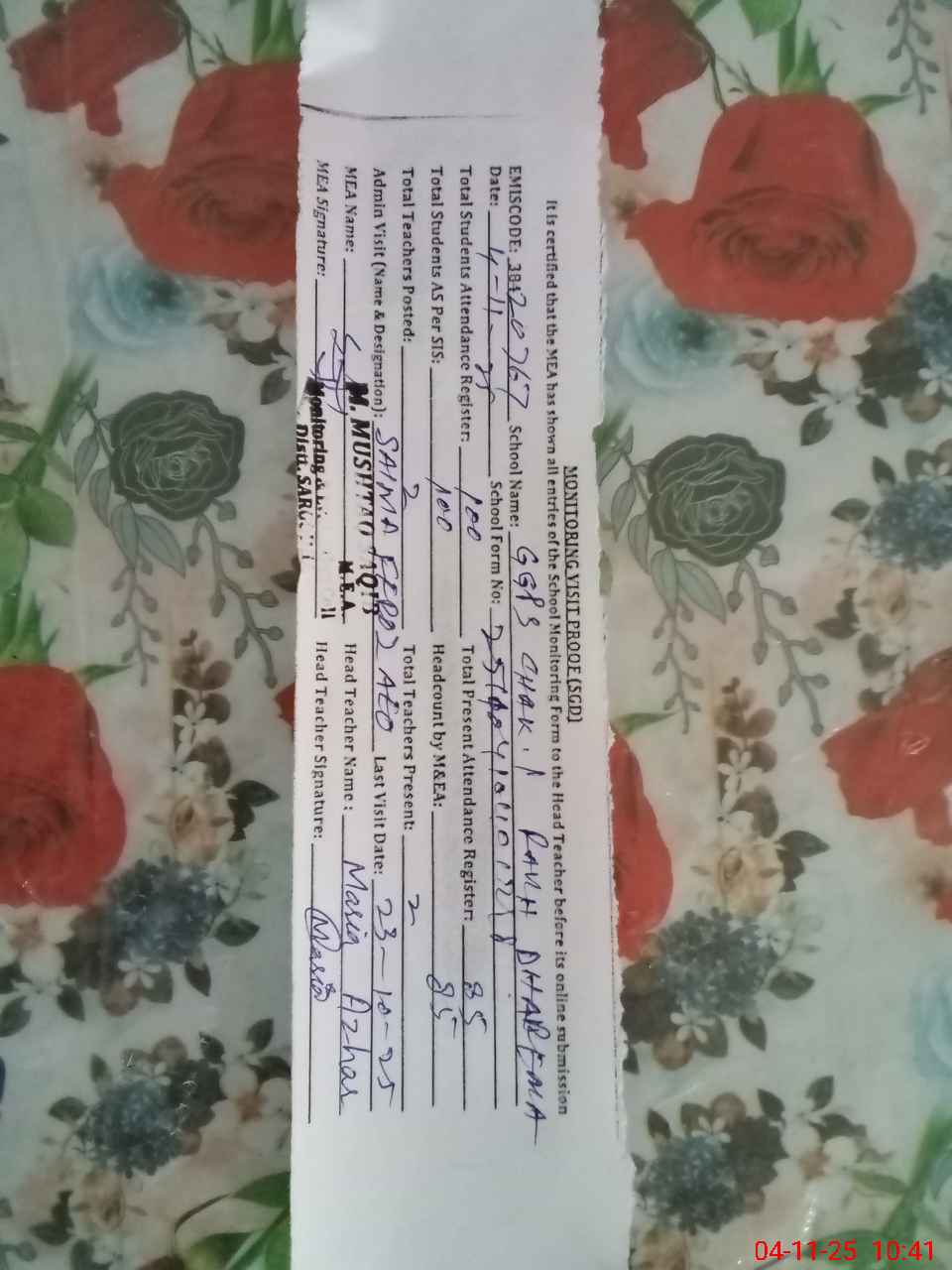 | EMIS Code: 38420767 | Name of School: GGPS CHAK NO.1 RAKH DHAREMA | |||
