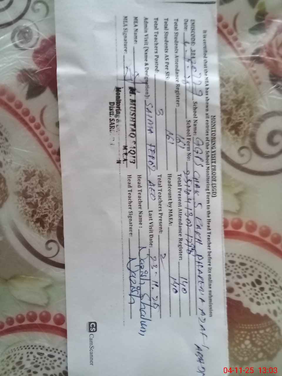 | EMIS Code: 38420729 | Name of School: GGPS CHAK NO.5 RAKH DHAREMA AZAFI ABADI | |||