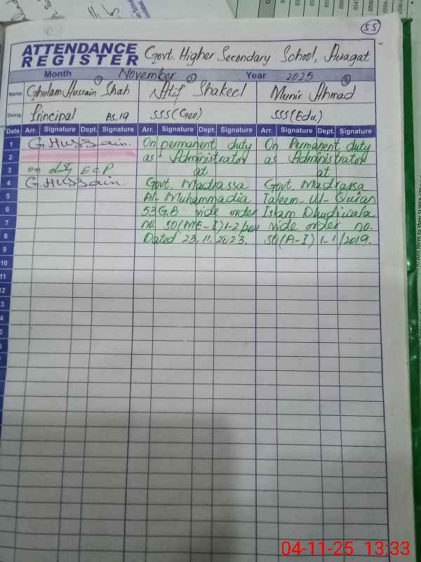| 33**** | GU**** RA**** | NQ | Regular | 0 | 31 | 0 | 0 | 0 | 0 | 0 | 0 | 0 | Exam Duty |