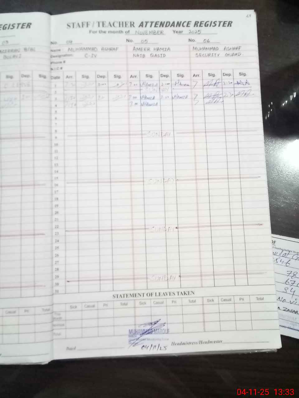 | Name: Sa**** Za**** Designation: (School Headmaster's/Headmistress's) HEADMISTRESS Phone/Cell Number: 03**** |