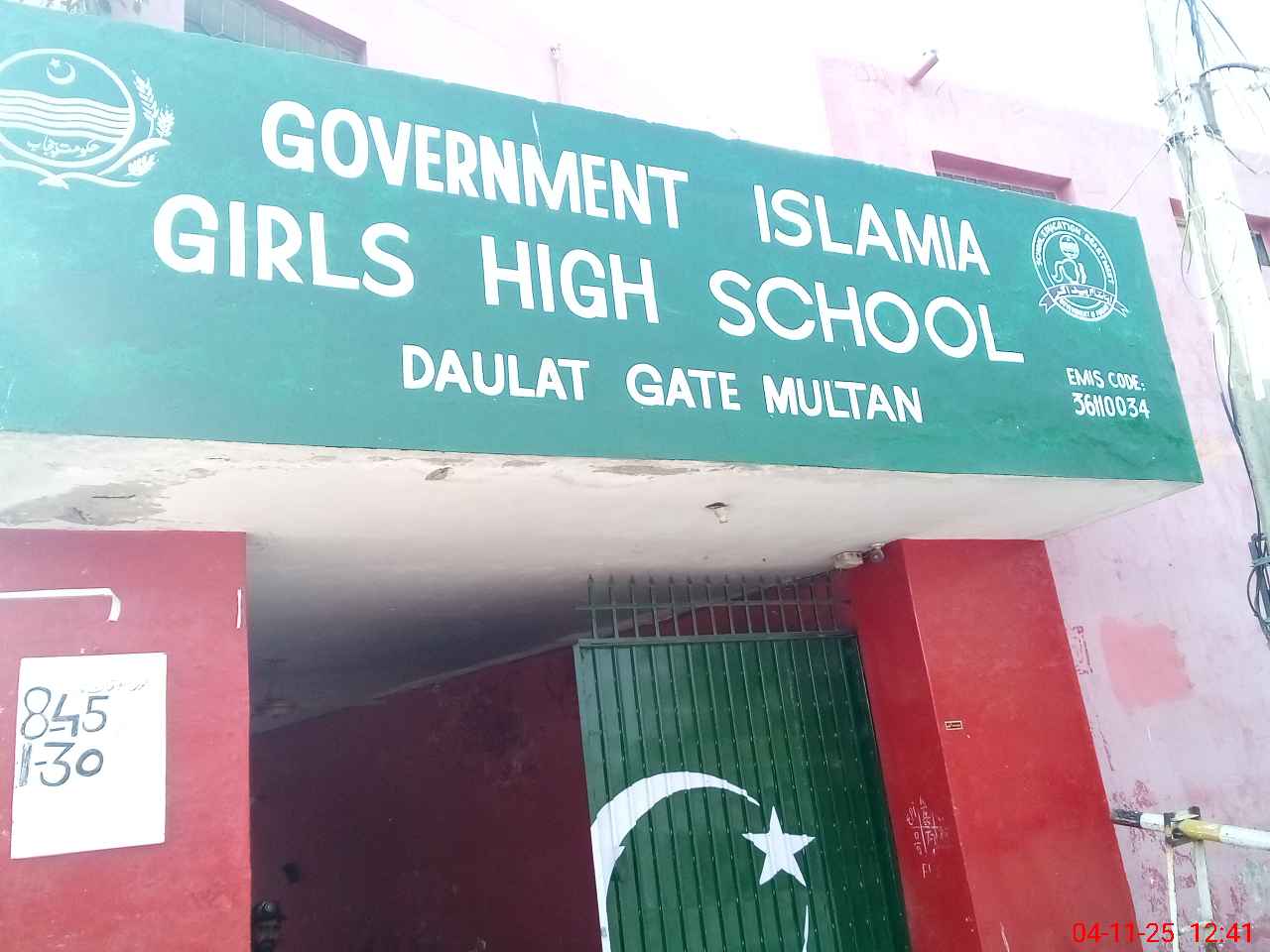 | EMIS Code: 36110034 | Name of School: GGHS ISLAMIA DOULAT GATE MULTAN | |||
