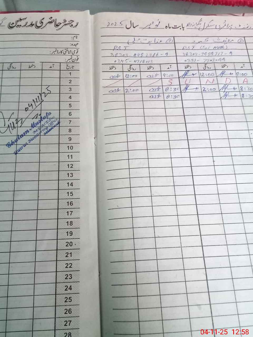 | Name: Qa**** Ab**** Designation: (School Headmaster's/Headmistress's) PST Phone/Cell Number: 03**** |