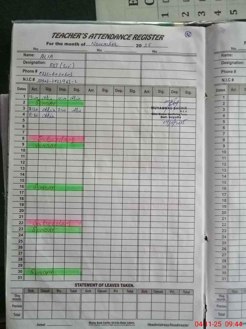 | Name: AL**** Designation: (School Headmaster's/Headmistress's) EST (GENERAL) Phone/Cell Number: 03**** |