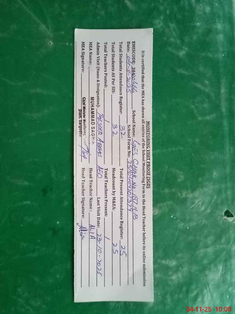| EMIS Code: 38420466 | Name of School: GES CHAK NO. 187 NB | |||