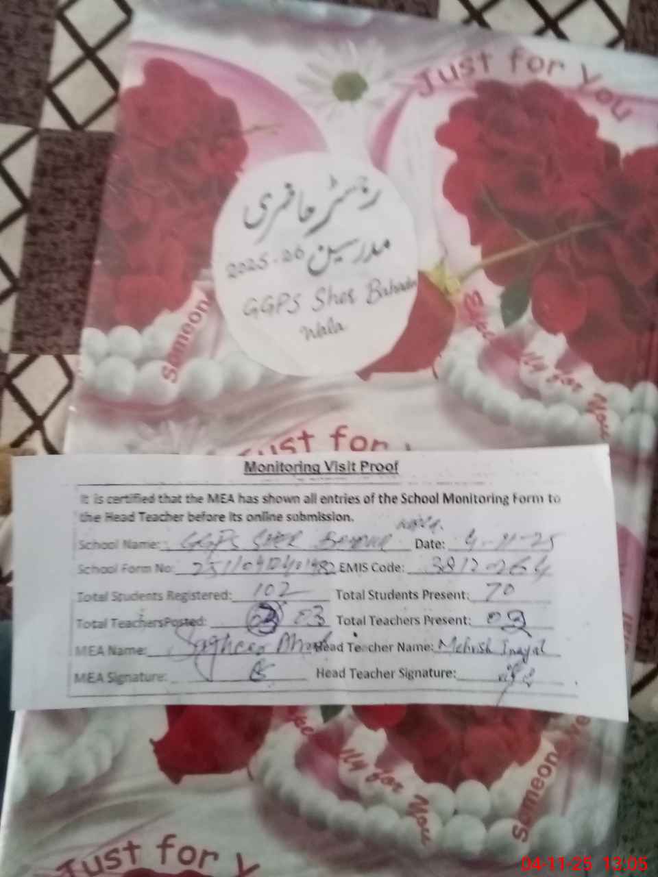 | EMIS Code: 38120264 | Name of School: GGPS SHER BAHADUR WALA | |||