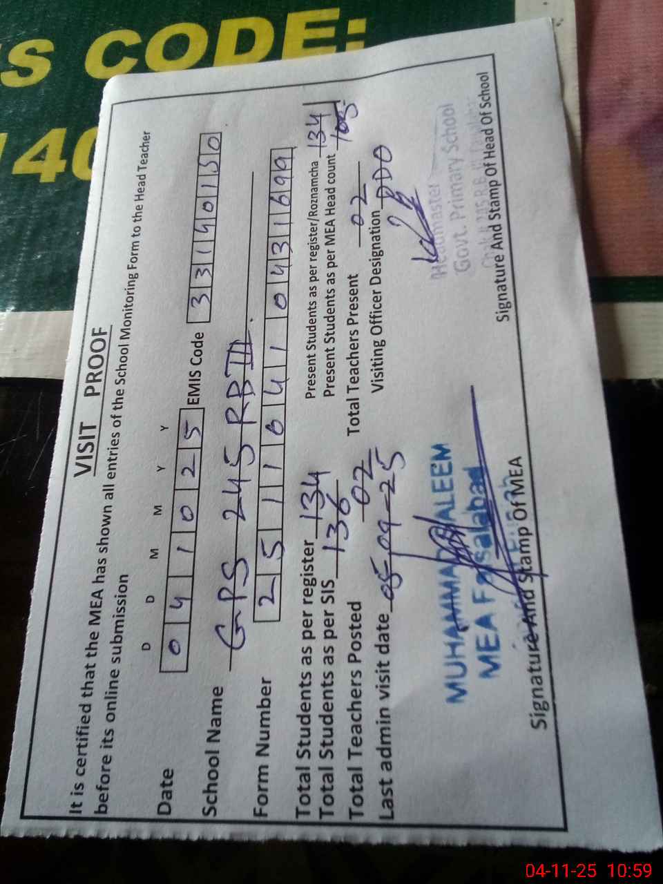 | EMIS Code: 33140150 | Name of School: GPS CHAK 245 RB III | |||