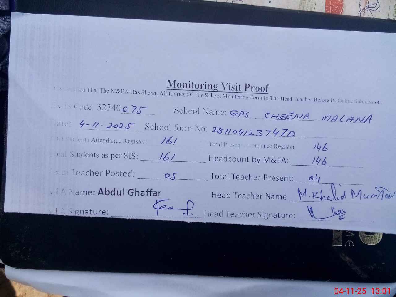 | EMIS Code: 32340075 | Name of School: GPS CHEENA MALANA | |||