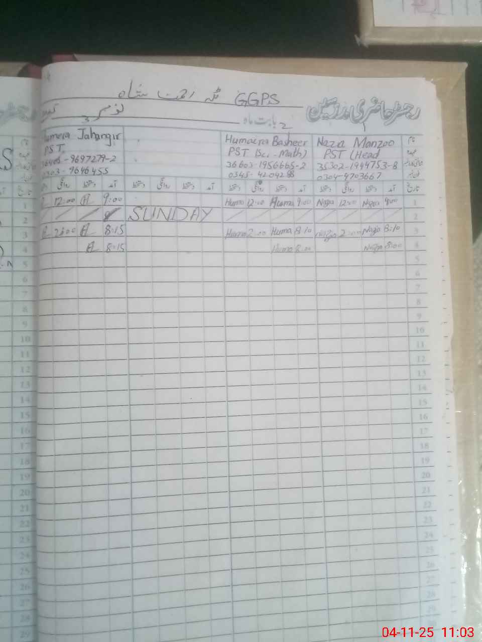 | Name: Hu**** Ba**** Designation: (School Headmaster's/Headmistress's) PST Phone/Cell Number: 03**** |