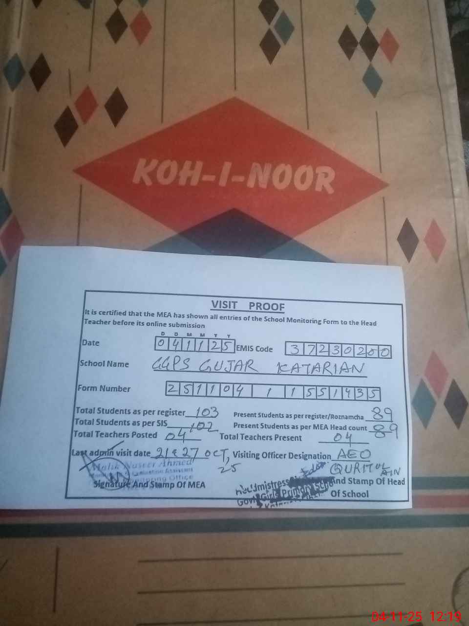 | EMIS Code: 37230200 | Name of School: GGPS GUJAR KATARIAN | |||