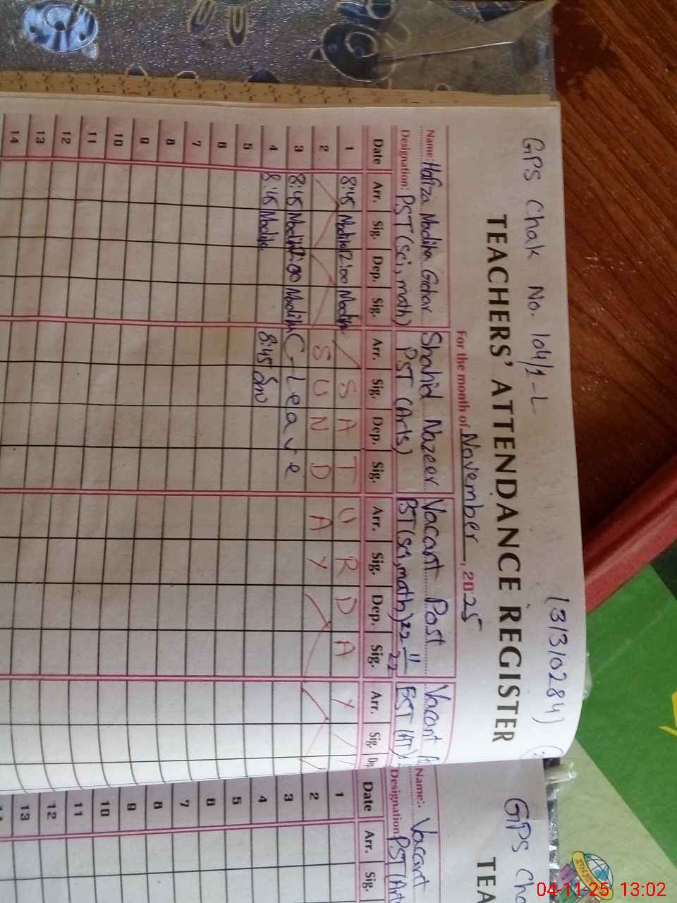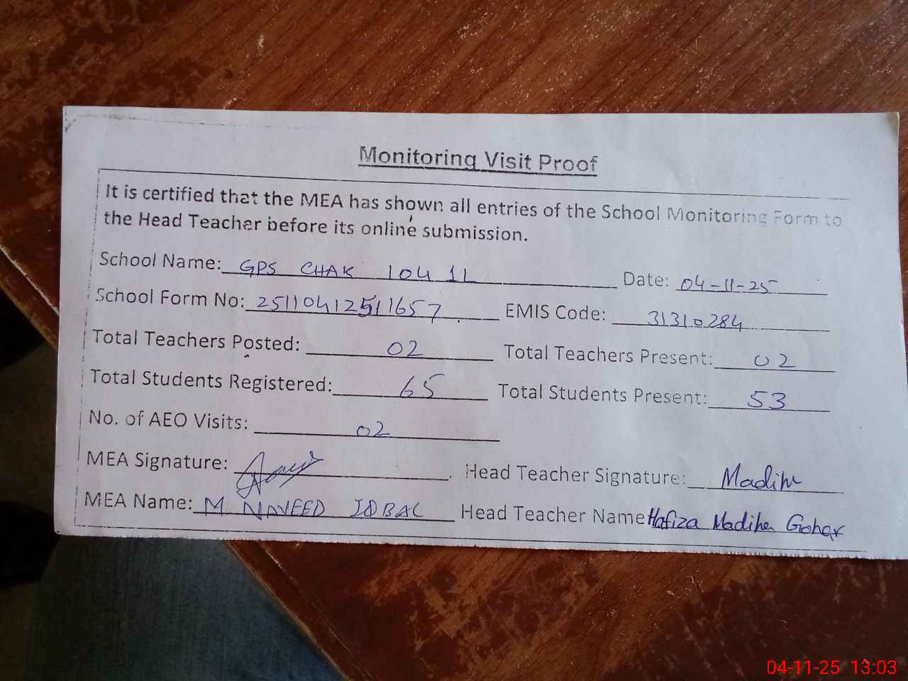 | EMIS Code: 31310284 | Name of School: GPS CHAK NO.104/1-L | |||