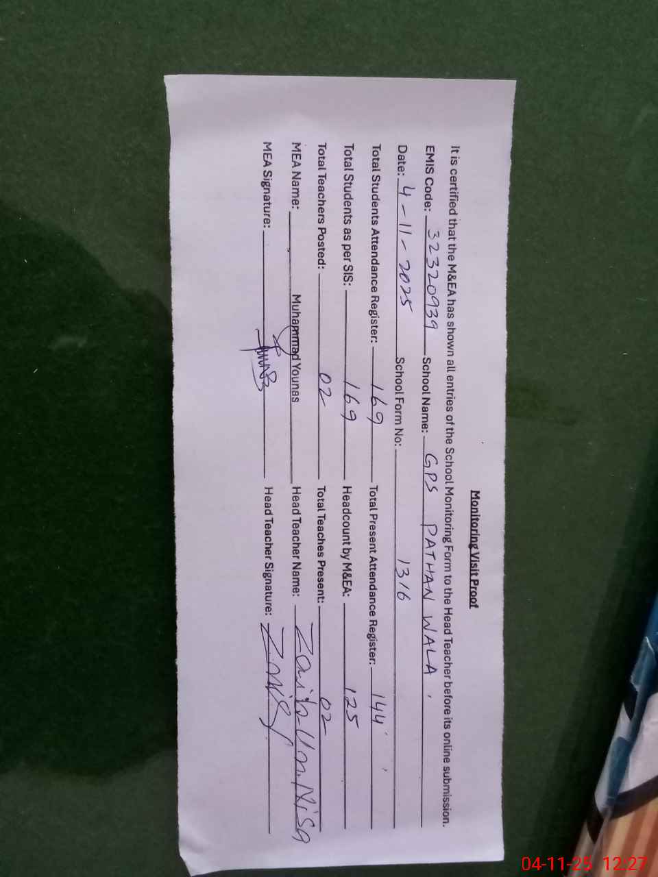 | EMIS Code: 32320939 | Name of School: GGPS PATHAN WALA | |||