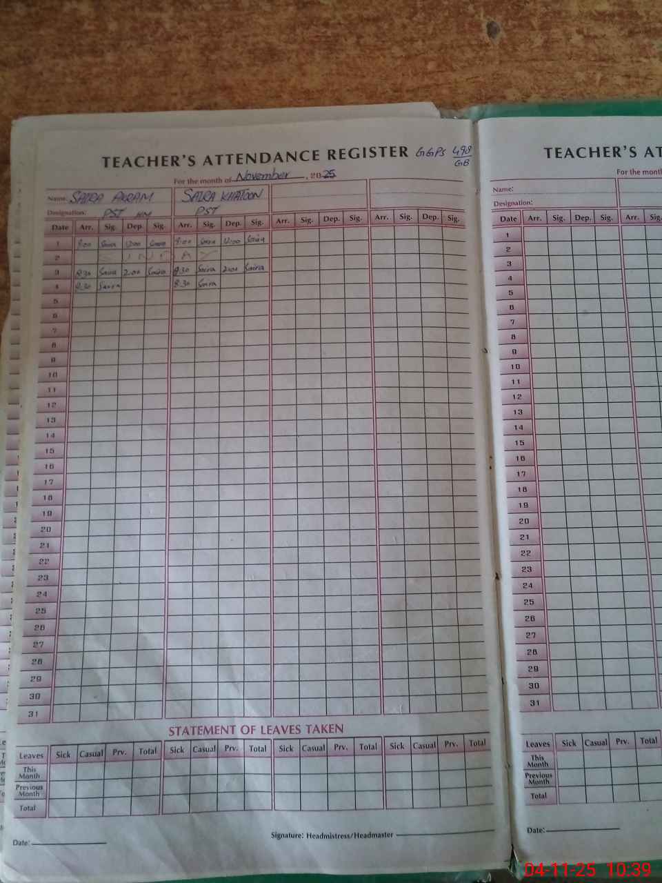 | Name: SA**** AK**** Designation: (School Headmaster's/Headmistress's) PTC Phone/Cell Number: 03**** |