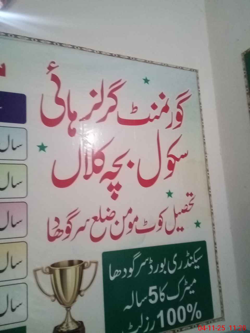 | District: SARGODHA | Tehsil: KOT MOMIN | Markaz: SECONDARY-WING | Level: High | |