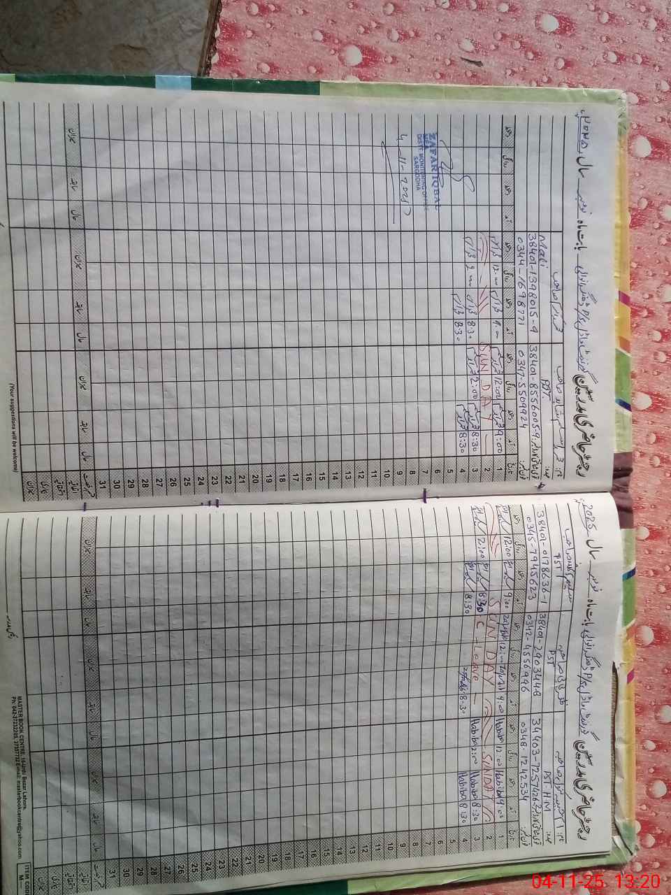 | CNIC | Full Name | Designation | R/C | Absence During Last Calender Month |