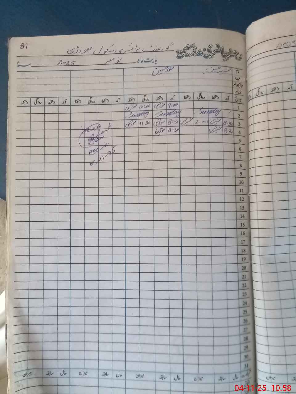 | Monitoring Date: 04-11-2025 | Start Time: 04-11-2025 10:51 AM | End Time: 04-11-2025 11:15 AM | Name of MEA: MU**** AS**** BN**** | |