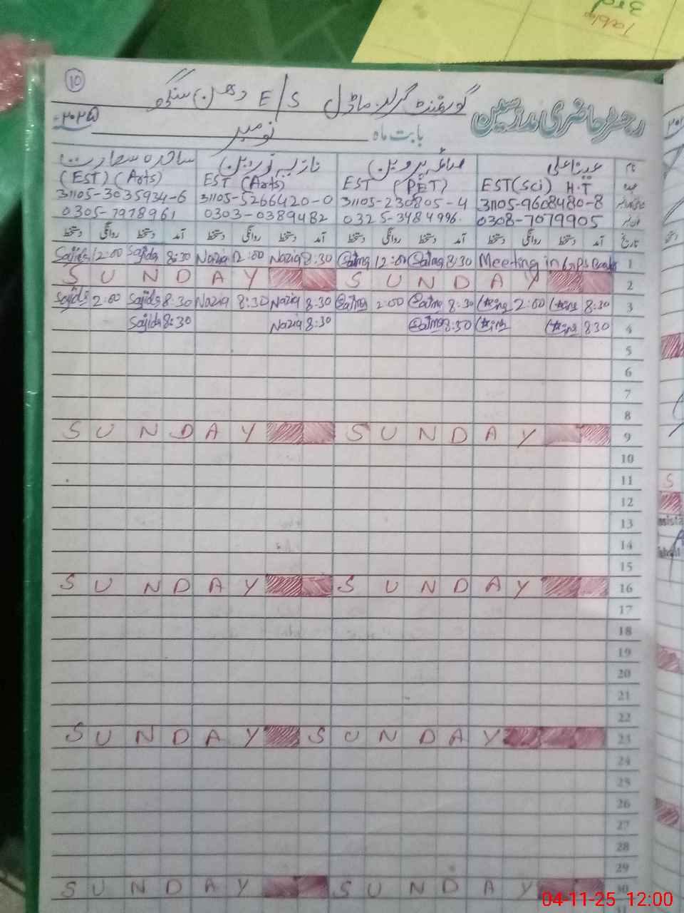 | CNIC | Full Name | Designation | R/C | Absence During Last Calender Month |
