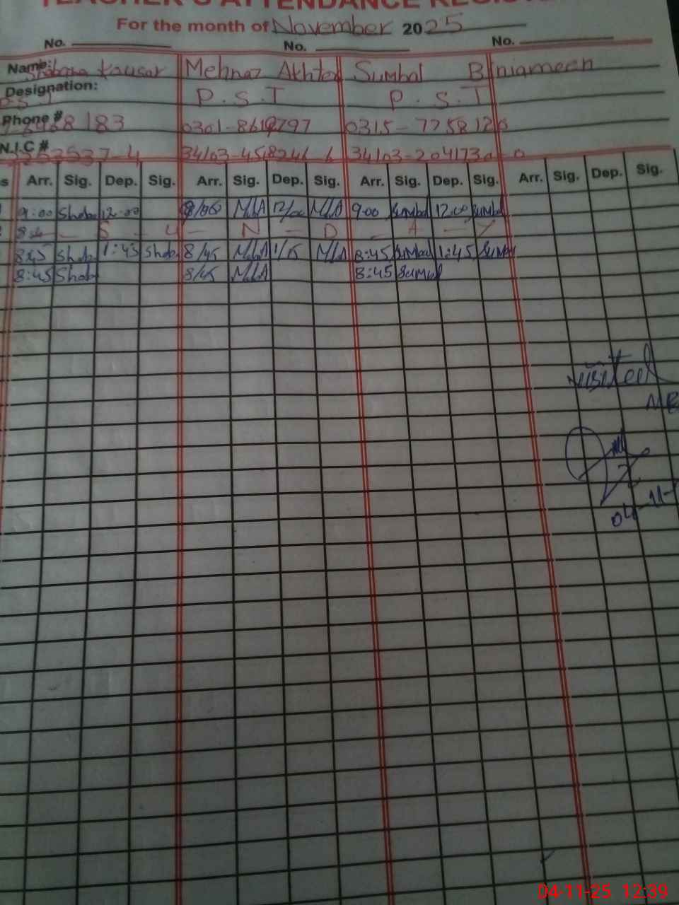 | Name: SH**** KO**** Designation: (School Headmaster's/Headmistress's) PST Phone/Cell Number: 03**** |