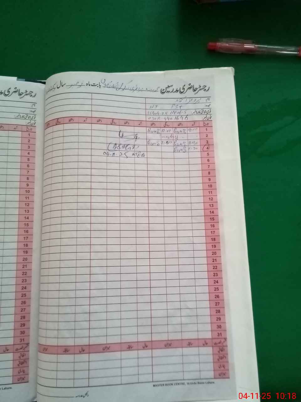 | CNIC | Full Name | Designation | R/C | Absence During Last Calender Month |