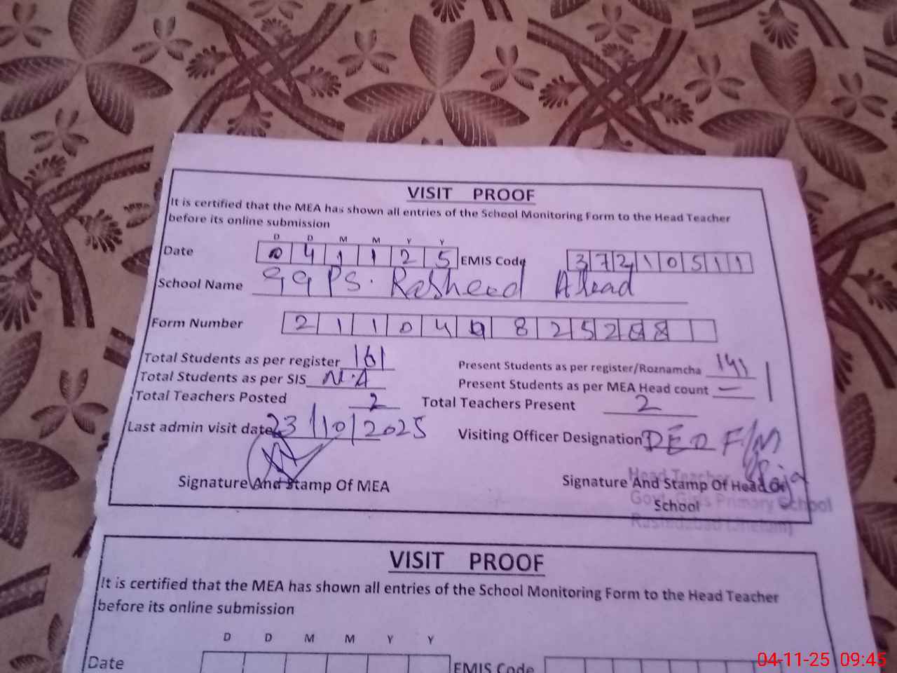 | EMIS Code: 37210511 | Name of School: GGPS Rasheed Abad | |||
