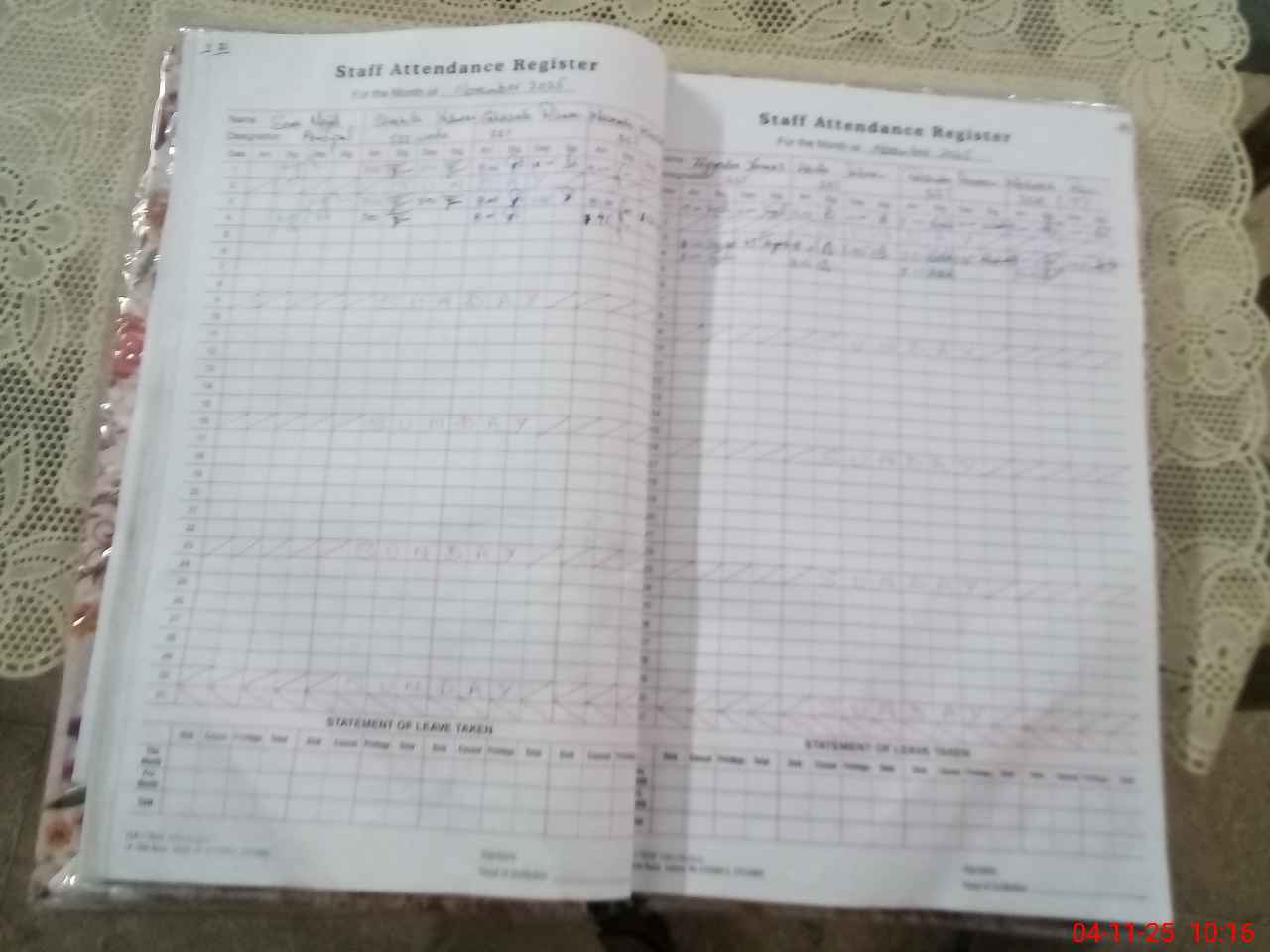 | Leave | Duty | Absent | Maternity | Medical | Ex- Pak |