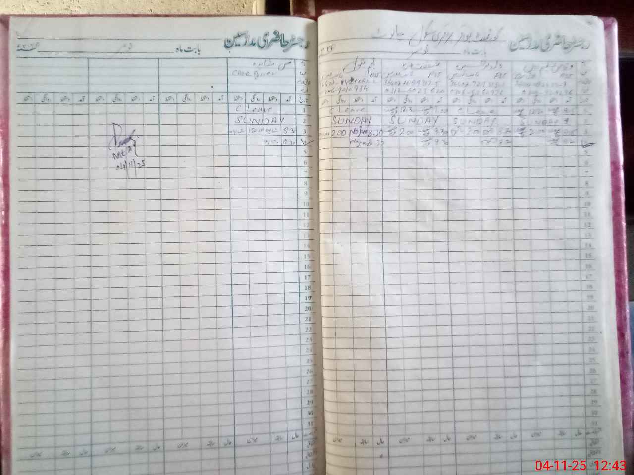 | CNIC | Full Name | Designation | R/C | Absence During Last Calender Month |