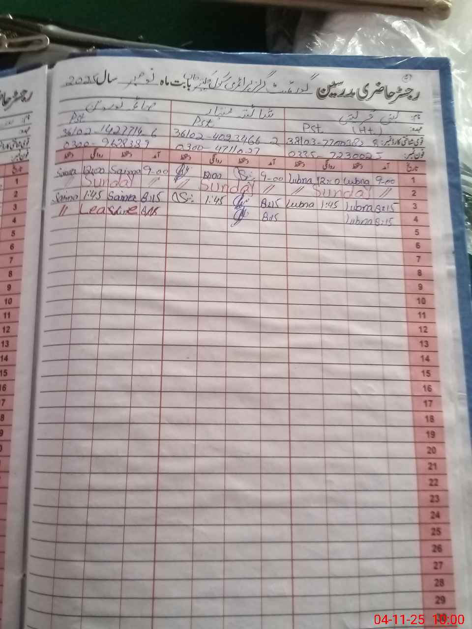| CNIC | Full Name | Designation | R/C | Absence During Last Calender Month |