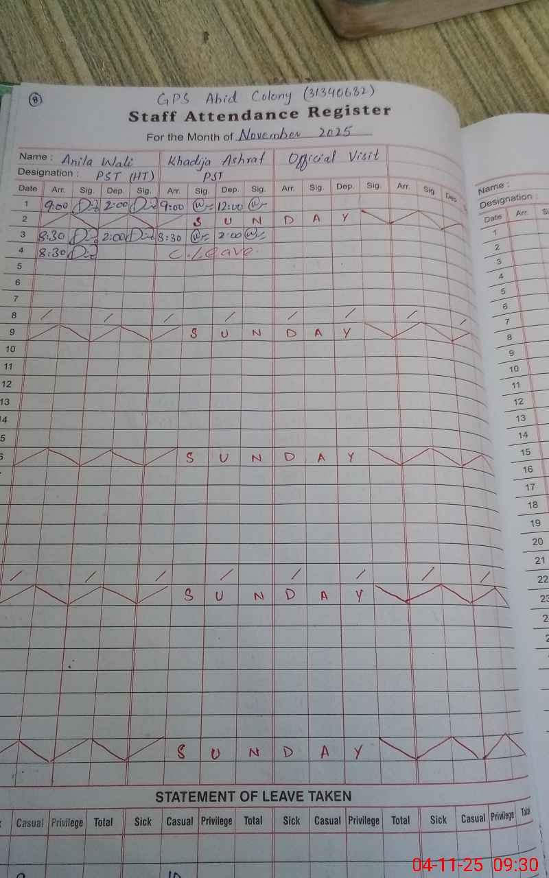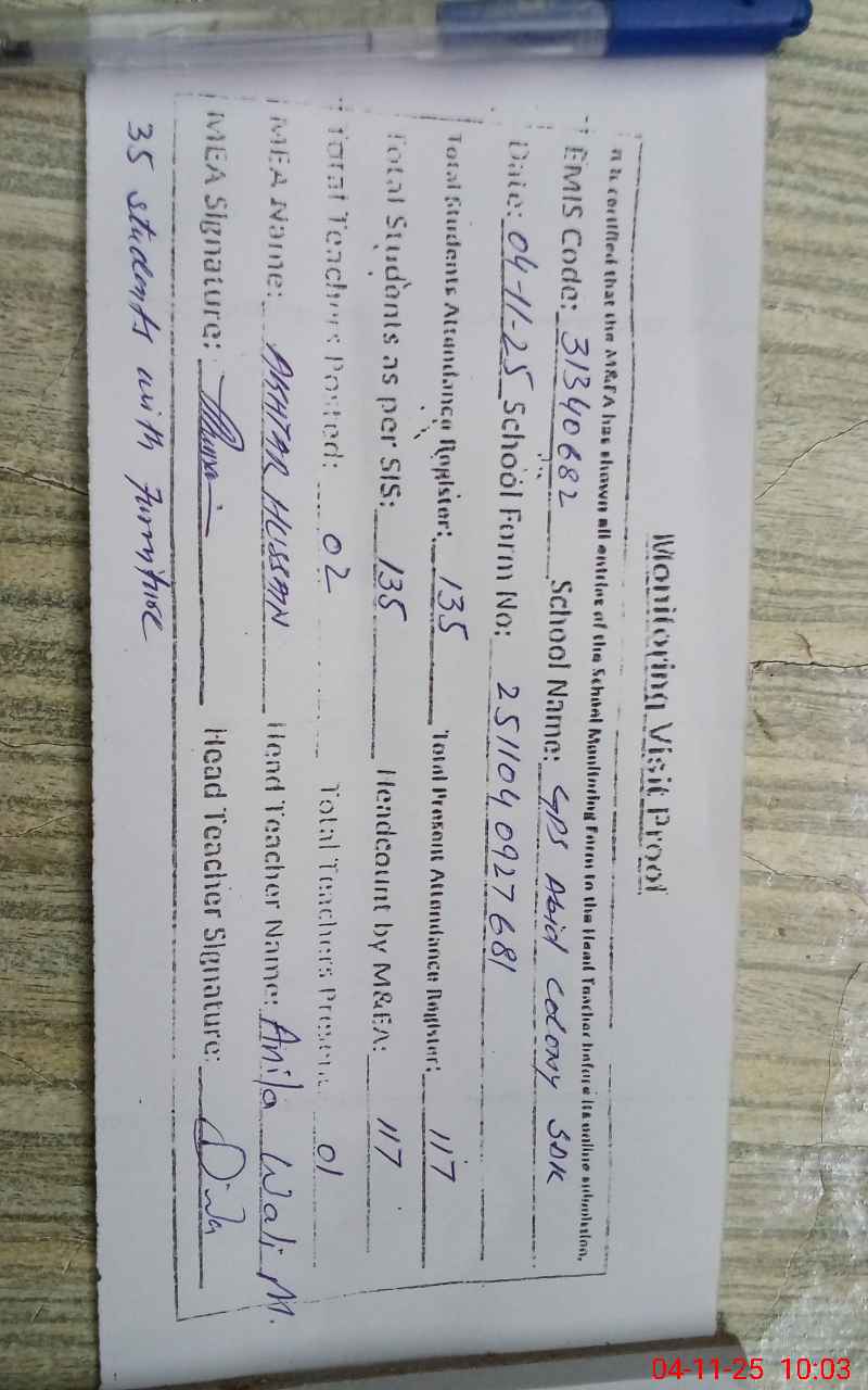 | EMIS Code: 31340682 | Name of School: GPS ABID COLONY | |||