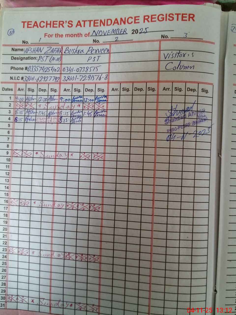 | Name: Af**** Za**** Designation: (School Headmaster's/Headmistress's) PST Phone/Cell Number: 03**** |