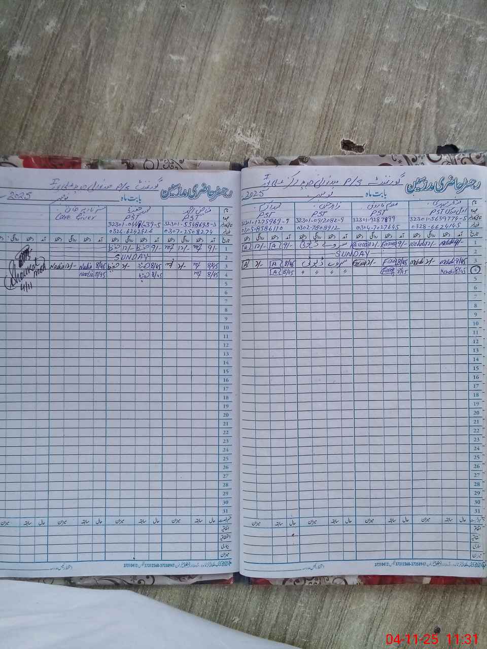 | CNIC | Full Name | Designation | R/C | Absence During Last Calender Month |