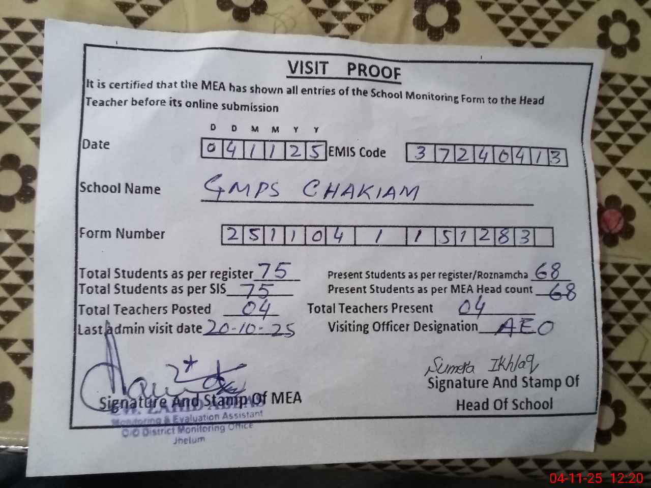| EMIS Code: 37240413 | Name of School: GMPS CHAKIAM | |||