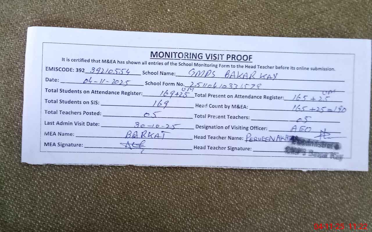 | Attendance Register | Head Teacher | MEA with School | Visit Proof |
