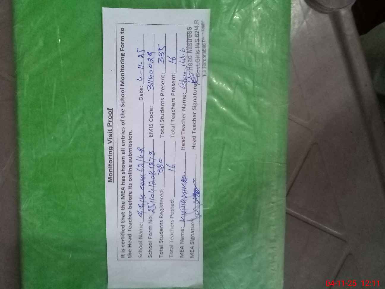 | EMIS Code: 31140029 | Name of School: GGHS CHAK NO.62/4-R | |||