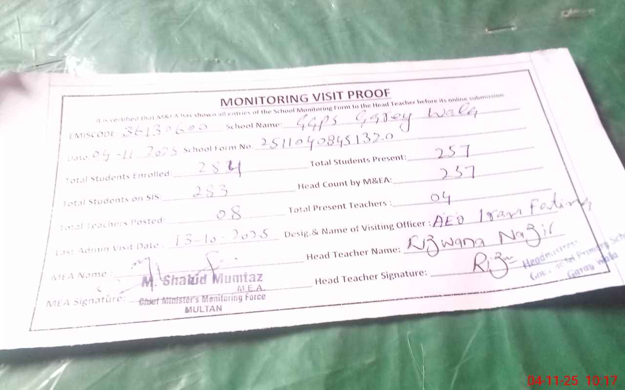 | EMIS Code: 36130600 | Name of School: GMPS GAREY WALA MULTAN | |||