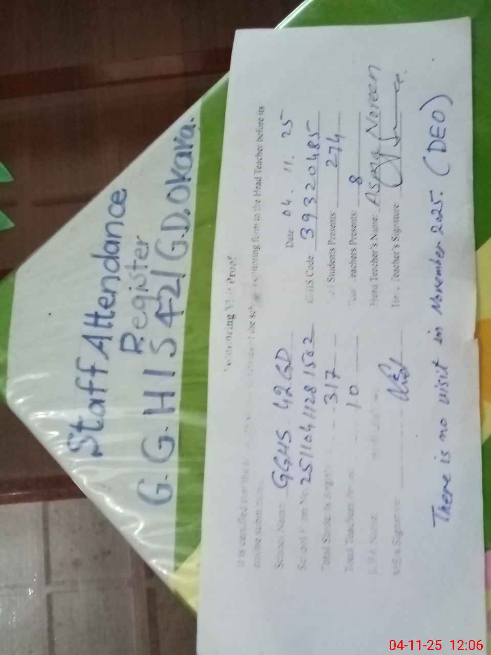 | Remarks (Use Separate Page if Required): There is no visit of DEO in November 2025 | |||||