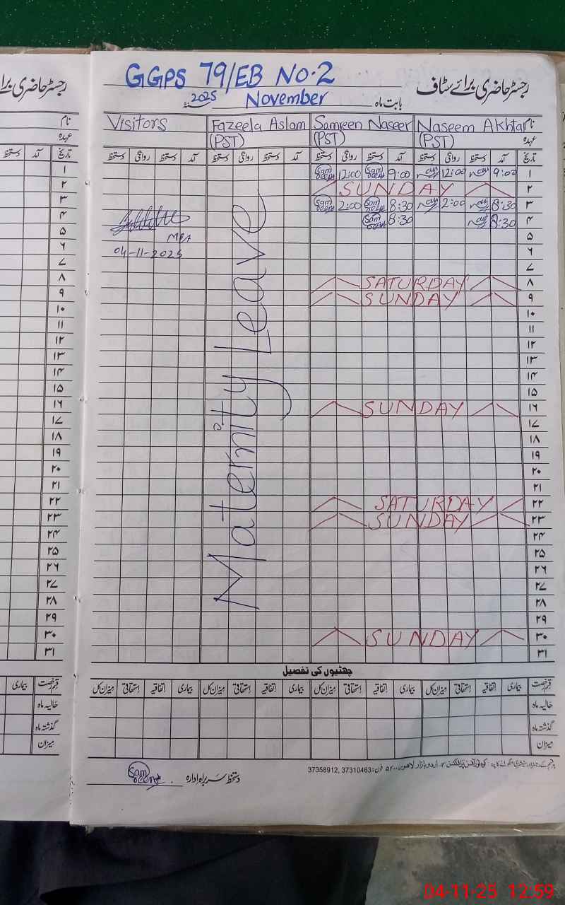 | 36**** | Fa**** Aa**** | Regular | 31 | 0 | 0 | 31 | 0 | 0 | 0 | 0 | 0 | Maternity | |