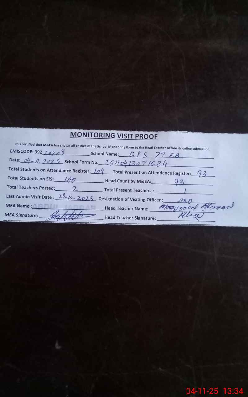 | EMIS Code: 39220209 | Name of School: GPS 77/EB | |||