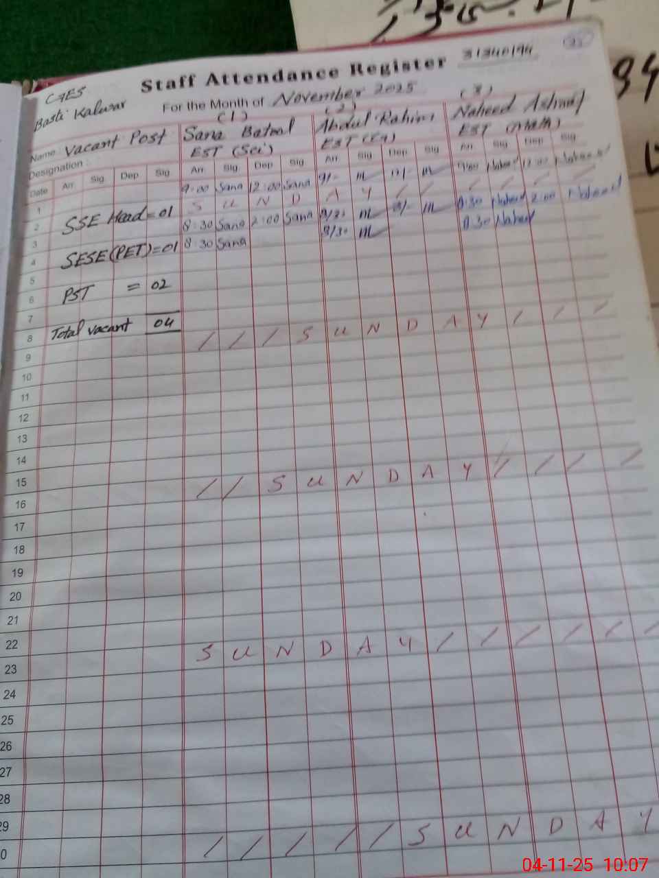 | Monitoring Date: 04-11-2025 | Start Time: 04-11-2025 09:19 AM | End Time: 04-11-2025 10:08 AM | Name of MEA: Mu**** Ak**** | |