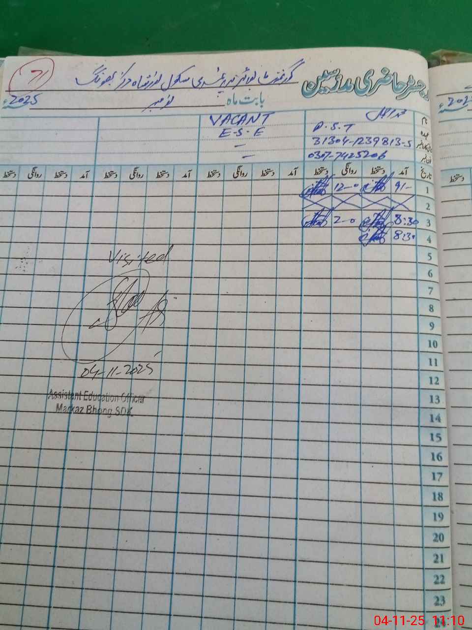 | Name: M.AJ**** Designation: (School Headmaster's/Headmistress's) PST Phone/Cell Number: 03**** |