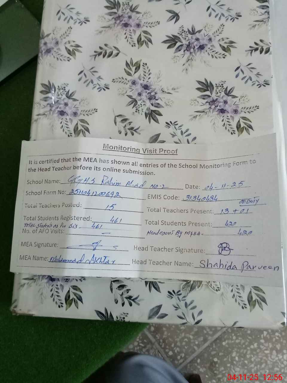 | EMIS Code: 31340484 | Name of School: GGHS RAHIM ABAD NO. 2 | |||