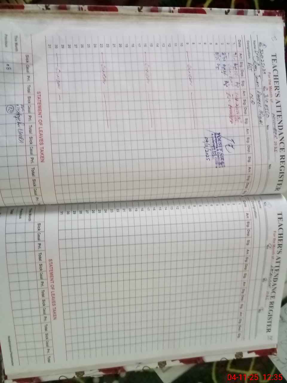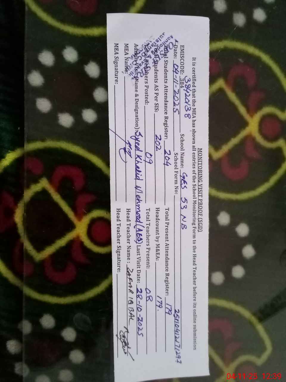 | Attendance Register | Head Teacher | MEA with School | Visit Proof |