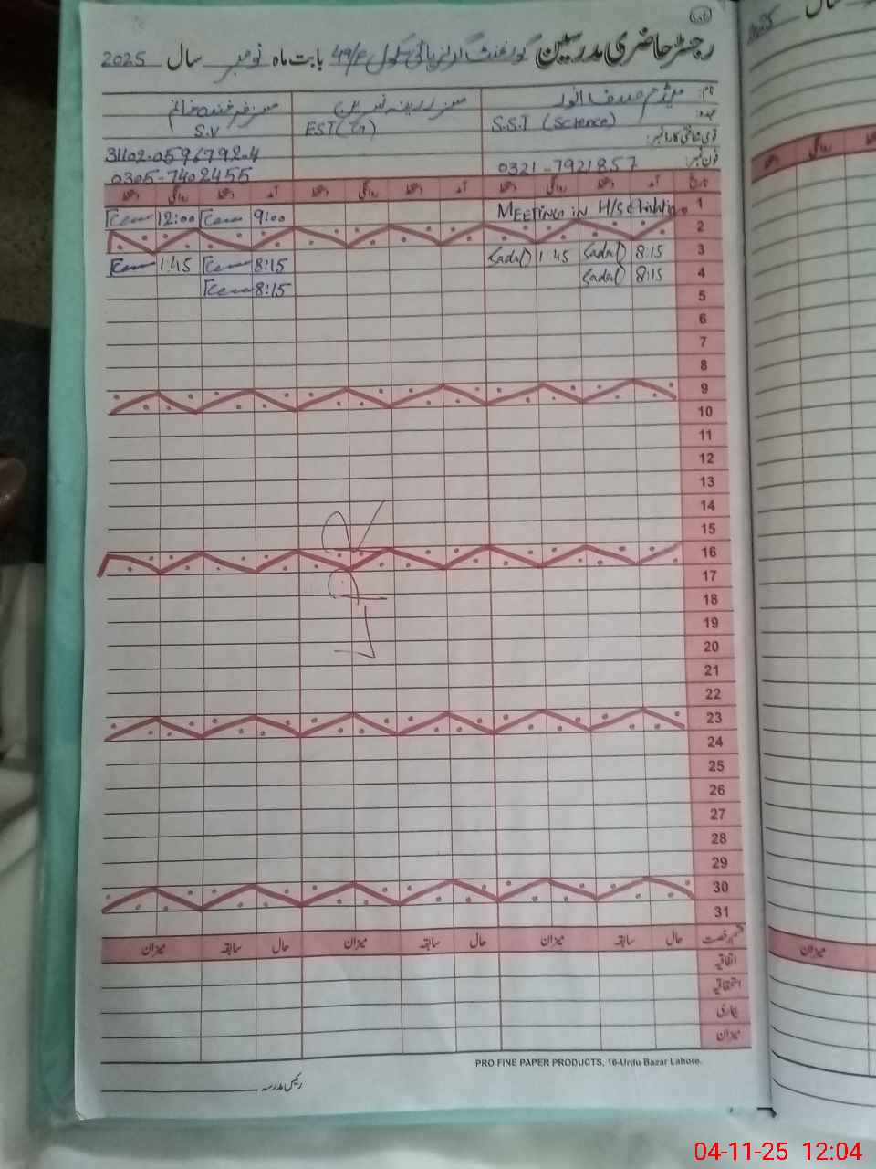 | Name: SA**** AN**** Designation: (School Headmaster's/Headmistress's) SST SCI Phone/Cell Number: 03**** |