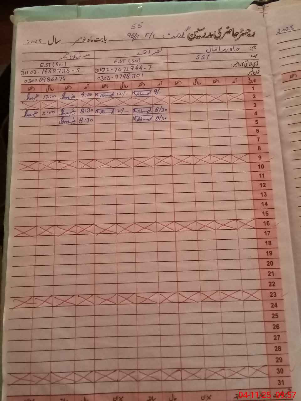 | CNIC | Full Name | Designation | R/C | Absence During Last Calender Month |