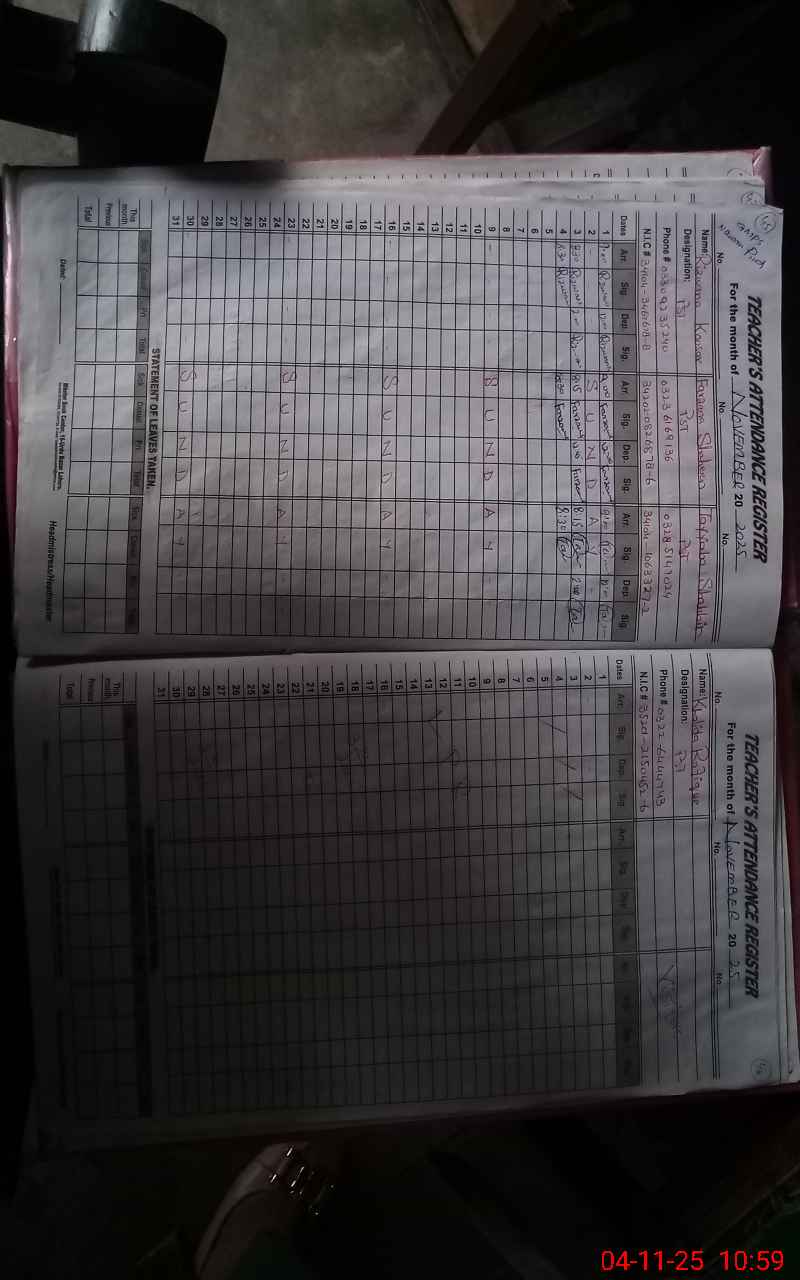 | Attendance Register | Head Teacher | MEA with School | Visit Proof |
