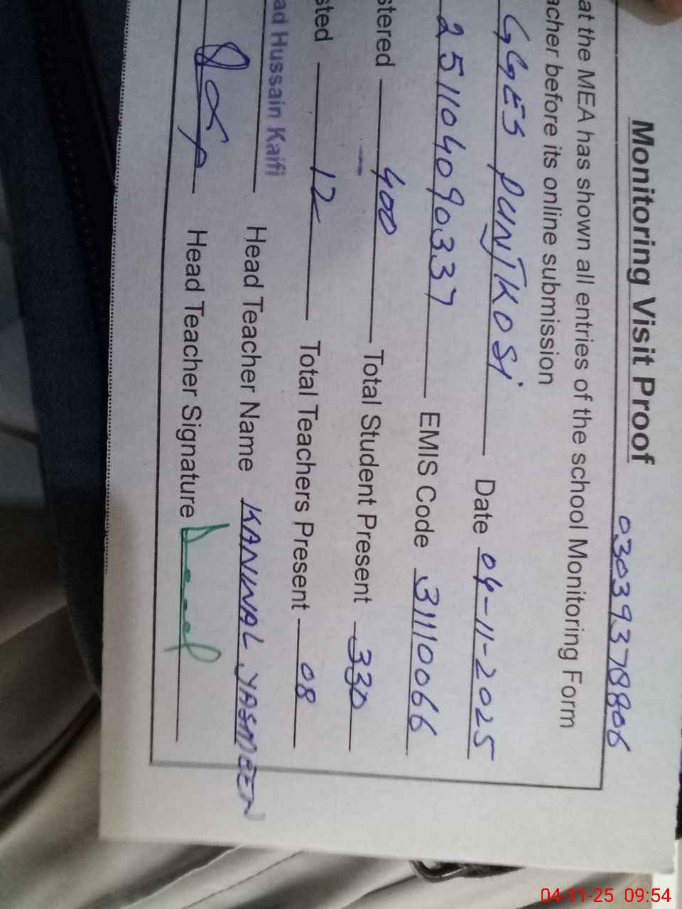 | EMIS Code: 31110066 | Name of School: GGES PUNJKOSI | |||